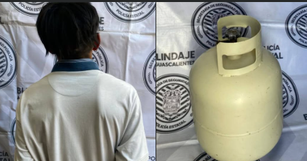 Uniformados de la Policía Estatal en coordinación con policías preventivos del municipio de San José de Gracia que realizaban su recorrido de vigilancia atendieron el reporte que se recibió en el Servicio de Emergencia 911, en el que se informaba que de un domicilio de la calle Nicolás de Los Reyes, un sujeto había sustraído un tanque de Gas LP de aproximadamente 10 kg, mismo que se había dado a la fuga.